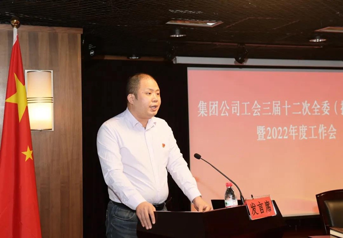 乐盈电竞(中国)有限公司官网工会常务副主席刘岩松以《贯彻落实第四次党代会精神,坚持政治引领,创新工作理念,精准服务职工,为建设国内知名的创新型企业集团共同奋斗》为题作工作报告;经审委副主任高宇飞作《2021年度集团工会经审工作报告》;集团工会常委张艳明宣读《关于表彰2021年度工会先进集体、工会先进干部和积极分子的决定》。
