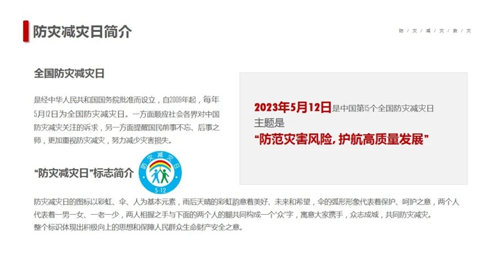 在第15个“5·12全国防灾减灾日”到来之际,乐盈电竞(中国)有限公司官网按照党中央、国务院、北京市委市政府部署的工作要求,以“防范灾害风险,护航高质量发展”为主题,深入开展防灾减灾宣传,以增强全系统干部职工安全忧患意识,提高防灾减灾及应对能力。