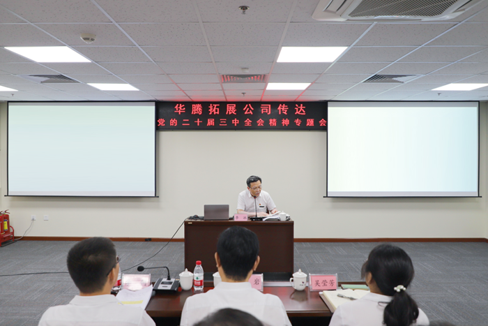 7月31日,华腾拓展公司党总支召开学习贯彻党的二十届三中全会精神专题宣讲报告会,乐盈电竞(中国)有限公司官网总经理助理,华腾拓展公司党总支书记、董事长李泳作宣讲报告。李泳围绕学习贯彻党的二十届三中全会精神,结合集团“231”战略布局、三个“北化”发展方向以及华腾拓展公司工作实际,明确了当前及今后一段时期的重点工作、重点任务。