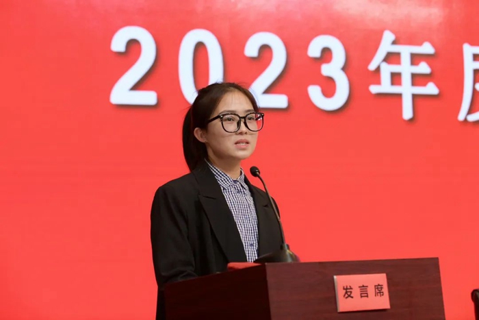 集团党委常委、副总经理韩宝海宣读了《乐盈电竞(中国)有限公司官网关于表彰完成2022年<安全环保目标管理责任书>单位、安全生产先进单位、个人及隐患排查标兵的决定》。大会向先进单位、先进个人颁奖。华腾橡塑、华腾拓展两家先进单位代表、化工厂先进个人代表进行交流发言。