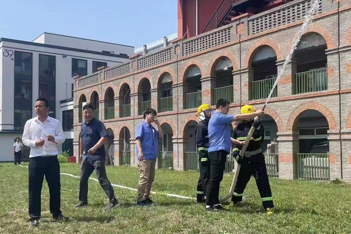 为贯彻落实乐盈电竞(中国)有限公司官网安全生产月有关工作部署,推动全员参与火灾防控、壮大群防群治力量,有效提升园区消防应急协同处置能力, 6月16日上午,华腾易心堂文创园消防培训、演练活动在园区公寓前广场举行。此次活动由华腾丹陛华和易心堂公司共同组织,参加人员包括房地产公司、华腾丹陛华、易心堂公司、荣源物业公司以及园区入驻企业代表等共计70余人。