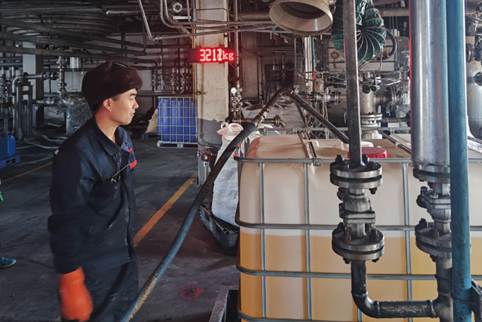 就在大年初六凌晨4时许,当班的党员同志们按时将环保试剂配送到北京固废物流有限公司消纳站,按照工作安排,当天要把1吨的除磷剂输送到反应罐中,他们熟练地进行插管、接泵、架线等各项工作。同时,他们还要把500公斤的柠檬酸固体送到消纳站仓库,以保证节日期间正常之需。